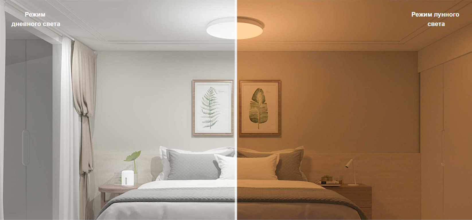 Плавная регулировка яркости и цветовой температуры с помощью приложения Mi Home/Xiaomi Home. Для освещения, отвечающего вашим потребностям в ночное время, используйте яркий дневной режим. Для мягкого и уютного освещения используйте режим лунного света.
